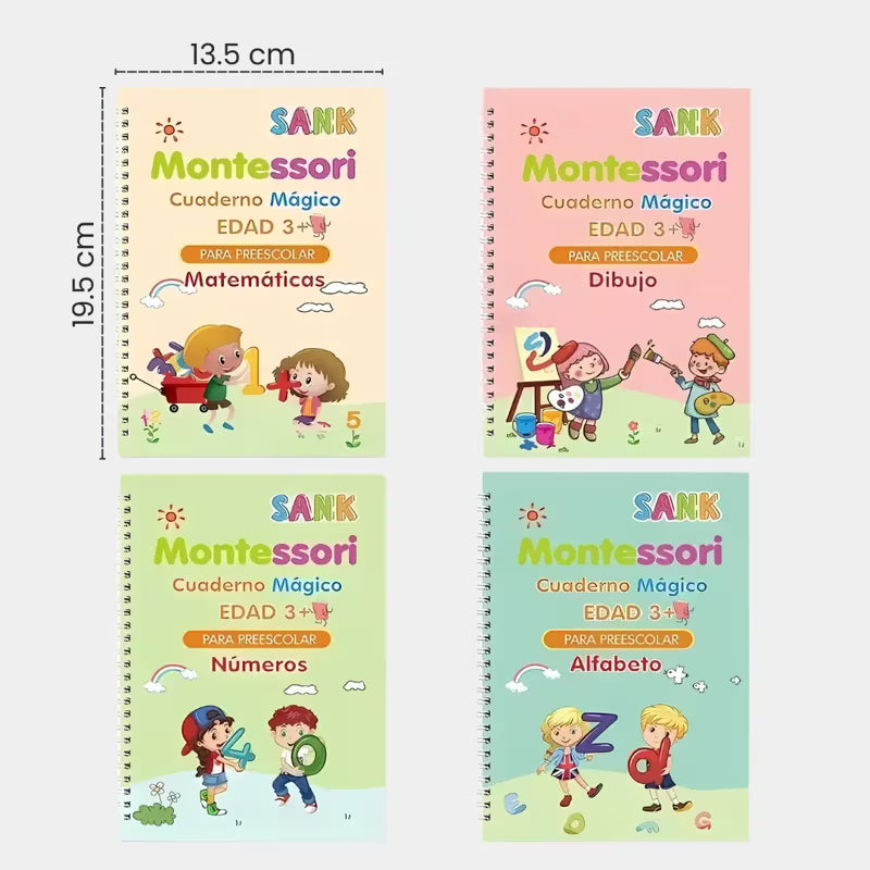 ¿Cansado de comprar cuadernos que se terminan en un día? Con nuestro Set de 4 Libros Mágicos Montessori, tu pequeño podrá practicar una y otra vez sin gastar papel.